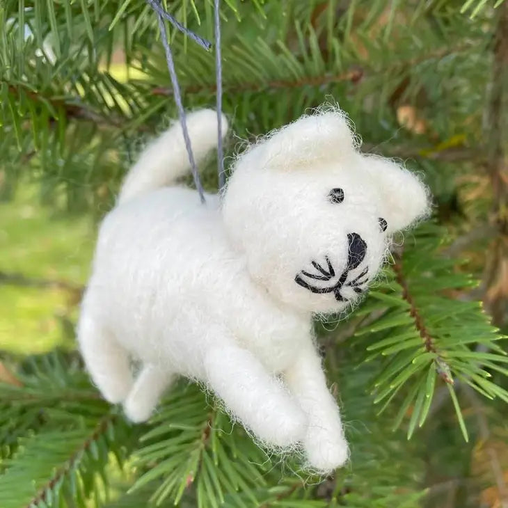Fair Trade Felt Cat Animal ornaments, hand felted wool, made in Nepal. We use a portion of our profits to pay full school tuition for 3 of our worker's kids in Nepal.